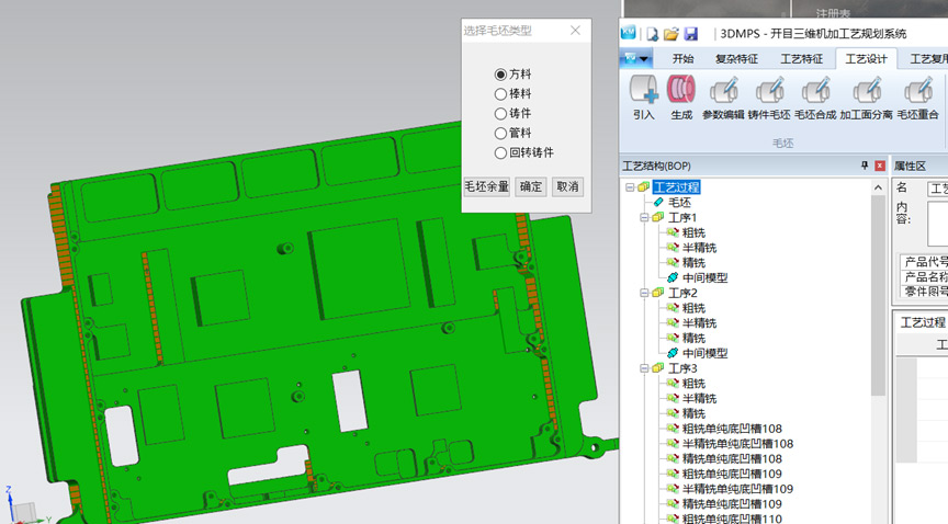 3DMPS是基于MBD技術,通過識別3D數(shù)模的制造特征及尺寸信息、公差和精糙度等信息,基于專家知識庫智能推理,自動獲取各制造特征的加工方法,生成零件的加工工藝過程、毛坯模型及各工序的中間模型,并支持加工過程仿真,工藝人員更準確、更高效地完成加工工藝設計,從而縮短生產(chǎn)準備周期,提高產(chǎn)品質量,降低研發(fā)成本,提高市場競爭力。