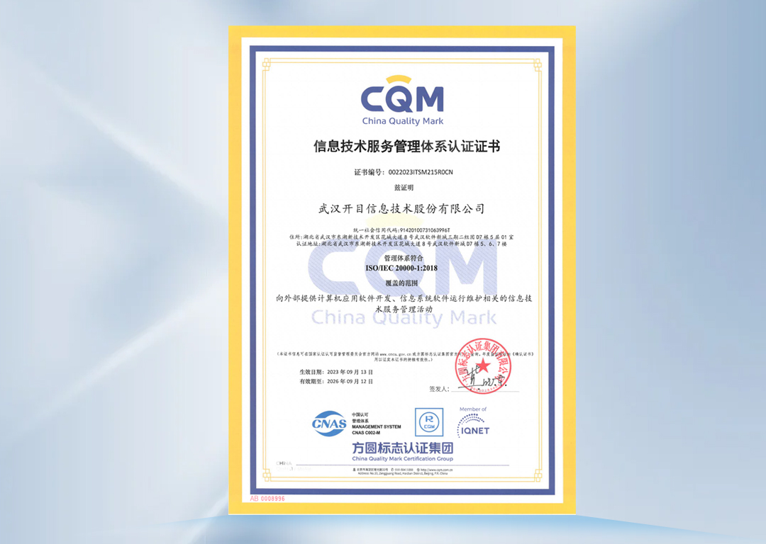 此次通過(guò)ISO20000體系認(rèn)證,標(biāo)志著開(kāi)目軟件已構(gòu)建成包含組織架構(gòu)、服務(wù)管理流程、IT支撐系統(tǒng)和IT服務(wù)管理信息的一體化管控體系,具備輸出安全、可靠、高效的IT服務(wù)綜合實(shí)力,IT管理和服務(wù)水平邁上了一個(gè)新臺(tái)階。