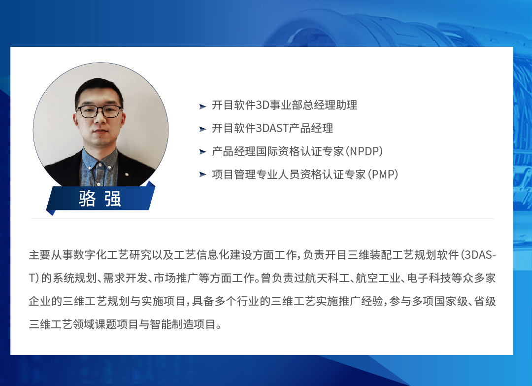 本期研討會(huì)特邀開(kāi)目公司3D事業(yè)部總經(jīng)理助理/3DAST產(chǎn)品經(jīng)理駱強(qiáng)先生,航天系統(tǒng)專家蔣科先生、中車(chē)南京浦鎮(zhèn)車(chē)輛數(shù)字工藝專家李樹(shù)棟先生,做客開(kāi)目線上直播間,與您一同探討制造企業(yè)如何部署和應(yīng)用三維裝配工藝規(guī)劃與仿真系統(tǒng),助力制造企業(yè)變革與創(chuàng)新。