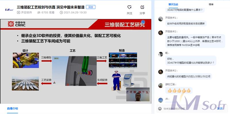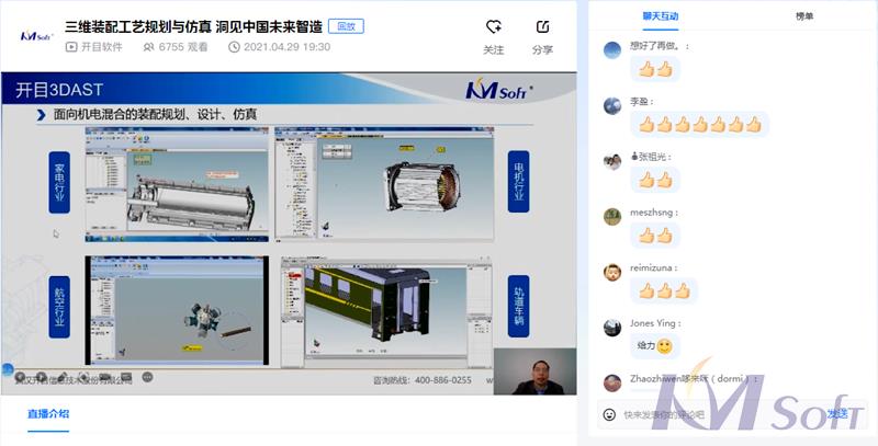 整場(chǎng)會(huì)議安排緊湊,互動(dòng)頻頻,觀點(diǎn)火花四射。3DAST進(jìn)行三維裝配工藝設(shè)計(jì)的流程是怎樣的?3DAST針對(duì)模型的輕量化比例能夠達(dá)到多少?工藝裝備庫(kù)是否可以自己擴(kuò)展?針對(duì)觀眾的提問(wèn),開(kāi)目公司技術(shù)大神全程在線答疑,專業(yè)、及時(shí)的答復(fù)獲得一致好評(píng)。