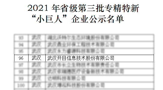近日,湖北省經(jīng)濟(jì)和信息化廳公布了2021年度省級(jí)專精特新“小巨人”企業(yè)名單,武漢開目信息技術(shù)股份有限公司成功入選。