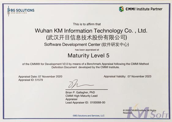 好消息!開目公司順利通過全球軟件領(lǐng)域難度最大、規(guī)格最高的軟件開發(fā)能力成熟度認(rèn)證CMMI 5,并獲得權(quán)威機(jī)構(gòu)頒發(fā)的CMMI 5級證書。