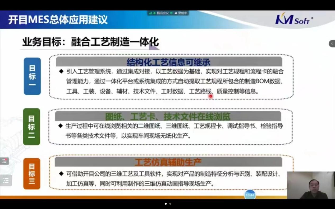 隨后,開目軟件MES事業(yè)部總經(jīng)理?xiàng)顏喎茋@《高端制造業(yè)的數(shù)字化工藝制造端到端應(yīng)用實(shí)踐》主題,也為參會企業(yè)詳細(xì)介紹了開目工藝與制造一體化解決方案的主要特點(diǎn)和應(yīng)用實(shí)踐,與來賓探討離散型制造企業(yè)如何打造智能車間,有效融合工藝制造,實(shí)現(xiàn)精益生產(chǎn)。