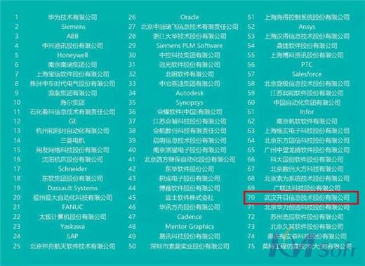 10月27日,中國軟件產(chǎn)業(yè)發(fā)展聯(lián)盟發(fā)布了“2017年中國工業(yè)軟件企業(yè)排行榜”,開目公司榮登百強榜第70名,排名較上一年上升了6位。賽迪顧問股份有限公司以專業(yè)的行業(yè)榜單和市場研究咨詢服務(wù)見長,被業(yè)內(nèi)譽為“中國信息產(chǎn)業(yè)風(fēng)向標,排行榜的權(quán)威性高,極具可參考價值。開目公司成功登榜,很大程度上代表了行業(yè)對于開目公司市場地位及貢獻的認可。