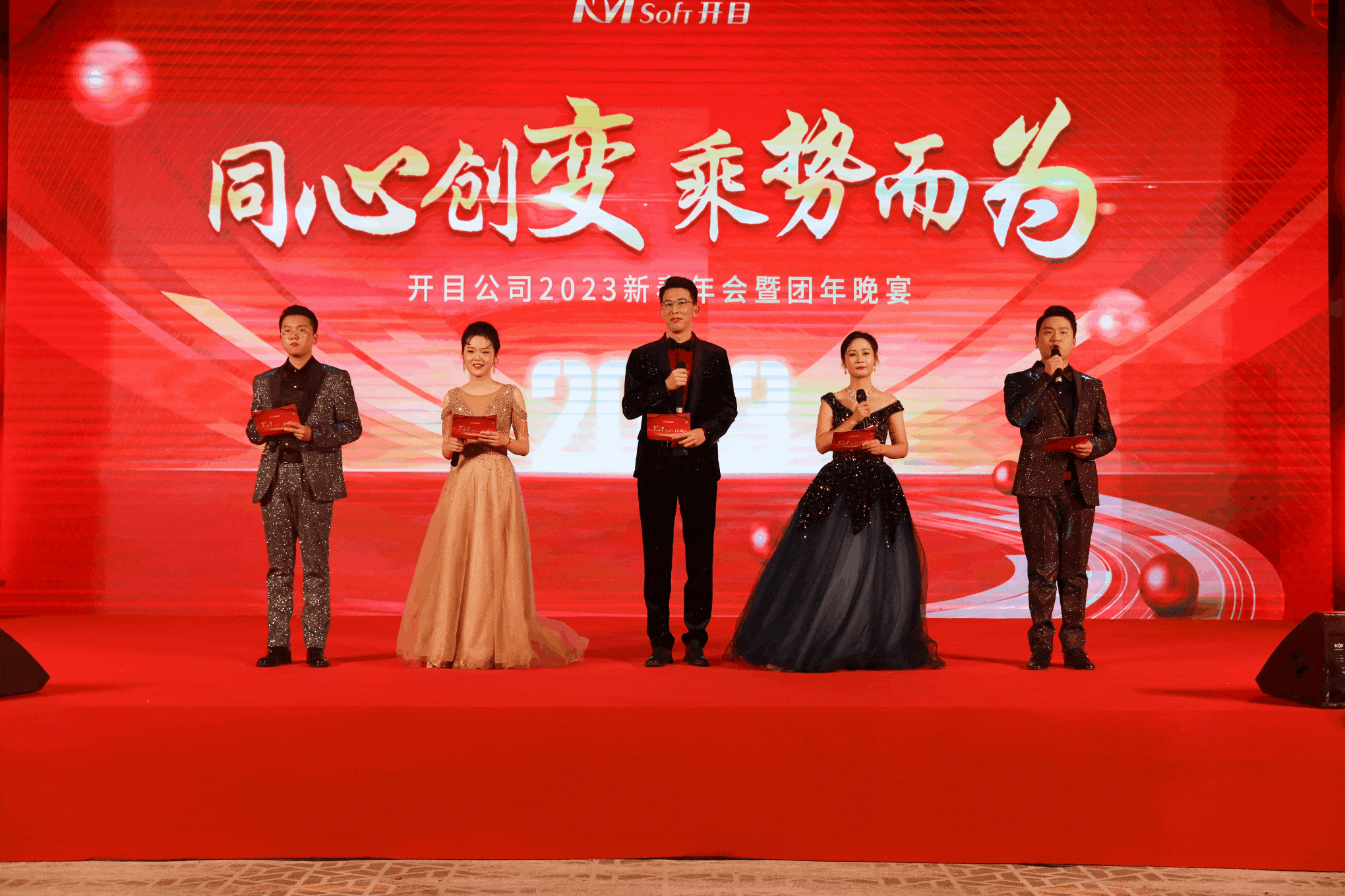 2月4日,立春節(jié)氣,終而有始,萬(wàn)象更新。時(shí)隔四年,開(kāi)目軟件新春年會(huì)暨團(tuán)年晚宴再次隆重舉行,本次年會(huì)以“同心創(chuàng)變 乘勢(shì)而為”為主題,公司創(chuàng)始人、首席科學(xué)家陳卓寧教授,董事長(zhǎng)陳萬(wàn)領(lǐng)博士,總經(jīng)理寧?kù)o波先生,各投資合作伙伴代表,開(kāi)目老同事,員工及家屬,近500人歡聚一堂,共饗盛宴。