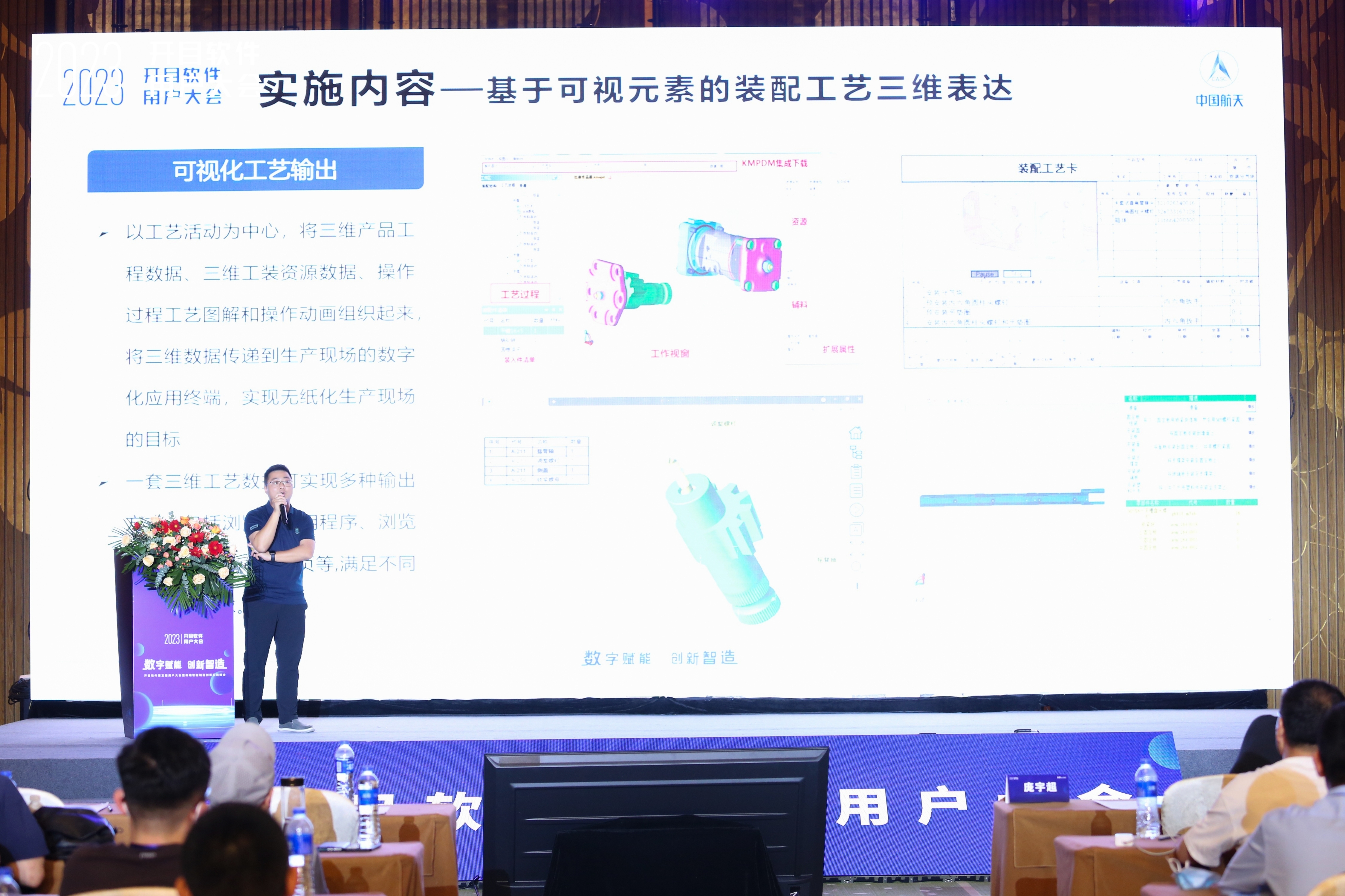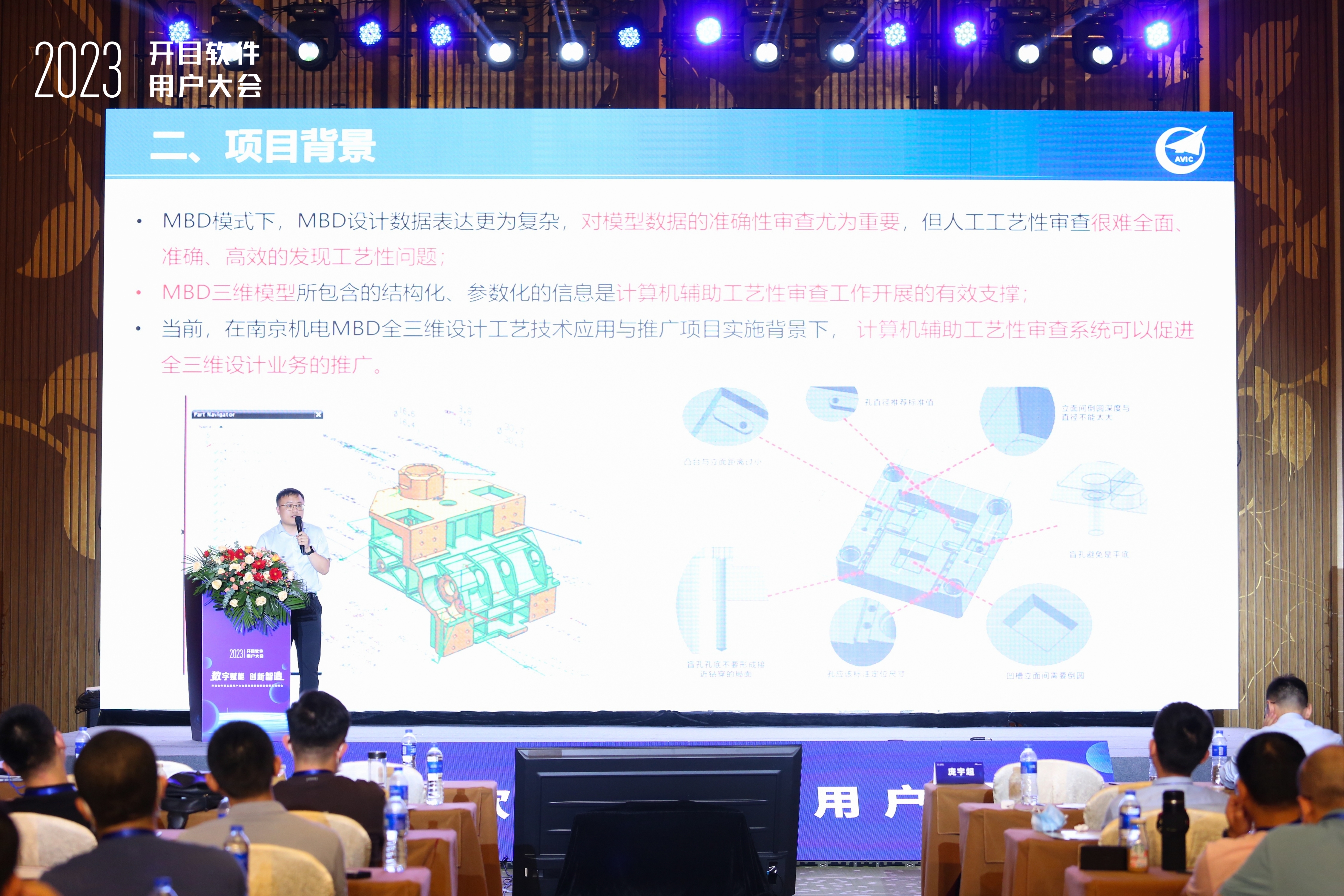 此外,航空工業(yè)集團(tuán)某公司工藝研究室項(xiàng)目主管黃博士、中國(guó)航發(fā)集團(tuán)某公司趙副主任、航天科技集團(tuán)某公司計(jì)量檢驗(yàn)部副部長(zhǎng)田總,則分別從項(xiàng)目背景、項(xiàng)目方案、項(xiàng)目成果、項(xiàng)目展望等模塊介紹開(kāi)目模型驅(qū)動(dòng)三維可制造性分析軟件3DDFM、三維零件工藝3DMPS、數(shù)字化柔性裝配工藝規(guī)劃3DAST的應(yīng)用實(shí)踐,為制造企業(yè)三維工藝設(shè)計(jì)數(shù)字化提供參考借鑒。