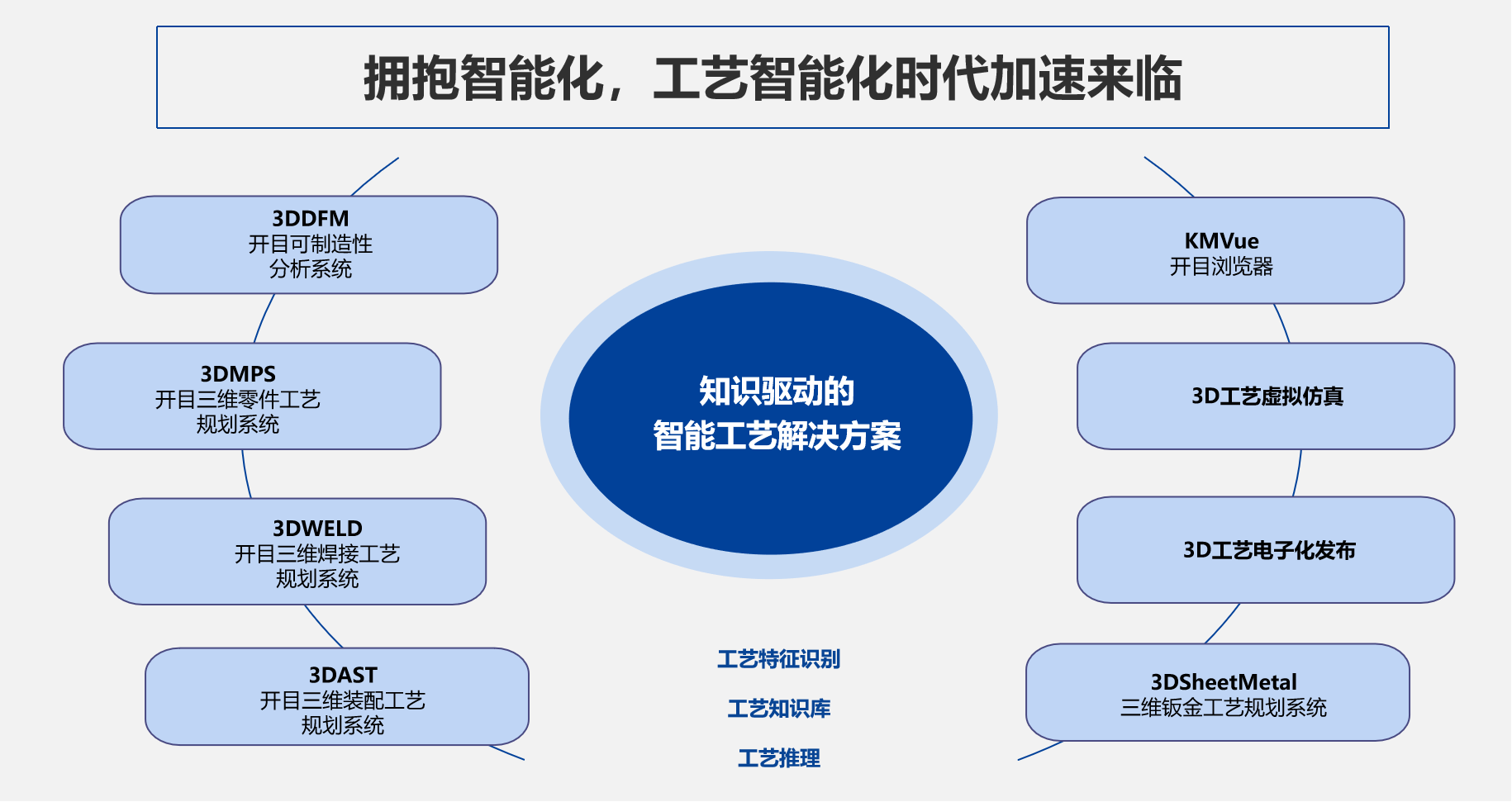 開目軟件自主研發(fā)的知識(shí)驅(qū)動(dòng)的三維智能工藝設(shè)計(jì)與仿真解決方案,旨在利用 MBD 技術(shù)、智能推導(dǎo)、虛擬仿真等數(shù)字化技術(shù),以知識(shí)與三維模型驅(qū)動(dòng),特征識(shí)別技術(shù)和專家知識(shí)庫(kù)為核心,搭建數(shù)字化設(shè)計(jì)與智能制造的橋梁,并與開目管理系統(tǒng)集成,實(shí)現(xiàn)企業(yè)三維技術(shù)的全面貫通,助力高端制造業(yè)客戶提質(zhì)增效、降本減存,真替真代。