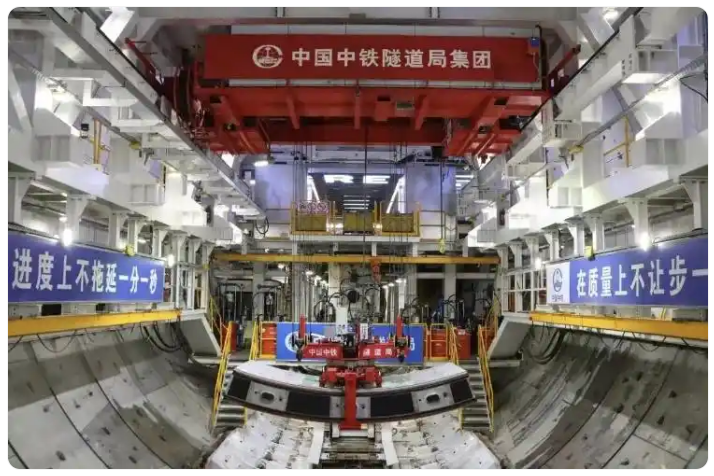 甬舟鐵路金塘海底隧道,“定海號”“甬舟號”盾構(gòu)機相向“穿海”。管片智能運輸系統(tǒng)如“地下物流網(wǎng)”,將14噸重的管片精準(zhǔn)送達拼裝位,效率提升40%。