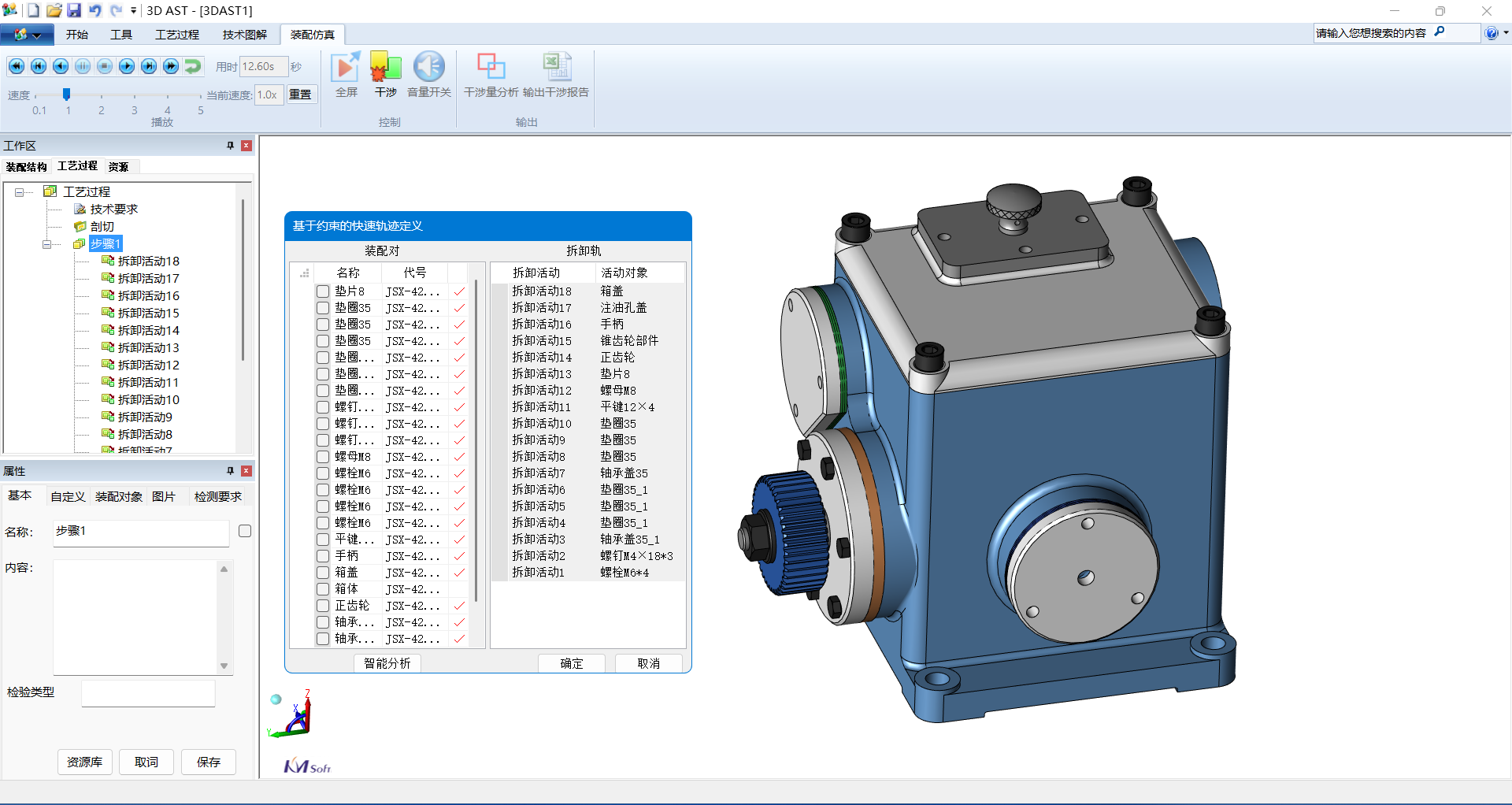 3DAST智能拆卸功能,可以基于零件空間位置與接觸關系,自動推薦該工序零部件的拆卸順序與運動軌跡。這極大地簡化了三維裝配工藝的制作流程,讓工程師從繁重的手動操作中解脫出來,減少了因人為失誤導致的設計返工,加快了產(chǎn)品從設計到生產(chǎn)的進程,對于整體三維裝配工藝制作操作效率提升60%以上。