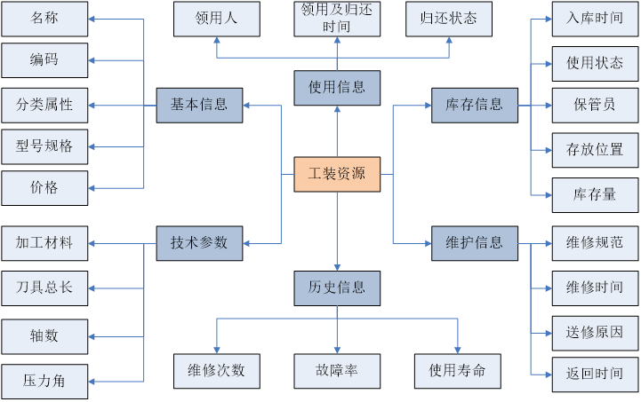其中,為工裝對(duì)象建立工裝分類(lèi)屬性集是核心要素,包括定義各工裝、工具對(duì)象的屬性??山⒐ぱb、工具對(duì)象動(dòng)態(tài)目錄,實(shí)現(xiàn)基于多廠所協(xié)同平臺(tái)建立企業(yè)工裝、工具庫(kù)、組合夾具庫(kù),實(shí)現(xiàn)工裝、工具庫(kù)的共享,具備工裝、工具、組合夾具資源的查詢借用及共享管理。以實(shí)現(xiàn)不同業(yè)務(wù)部門(mén)、不同業(yè)務(wù)需求和不同崗位用戶的工裝使用需求。可清晰記錄工裝對(duì)象與產(chǎn)品/零部件、工藝、車(chē)間、操作人員等的關(guān)聯(lián)關(guān)系,并通過(guò)自定義關(guān)聯(lián)視圖的方式直觀地表達(dá)與工裝、工具相關(guān)的其它信息的管理。系統(tǒng)提供關(guān)聯(lián)管理,能夠建立數(shù)據(jù)之間的邏輯關(guān)聯(lián),把與工裝相關(guān)的其它信息(例如工藝文件、設(shè)備、人員、產(chǎn)品等)統(tǒng)一管理起來(lái),便于用戶進(jìn)行工裝相關(guān)信息的查詢和追溯。