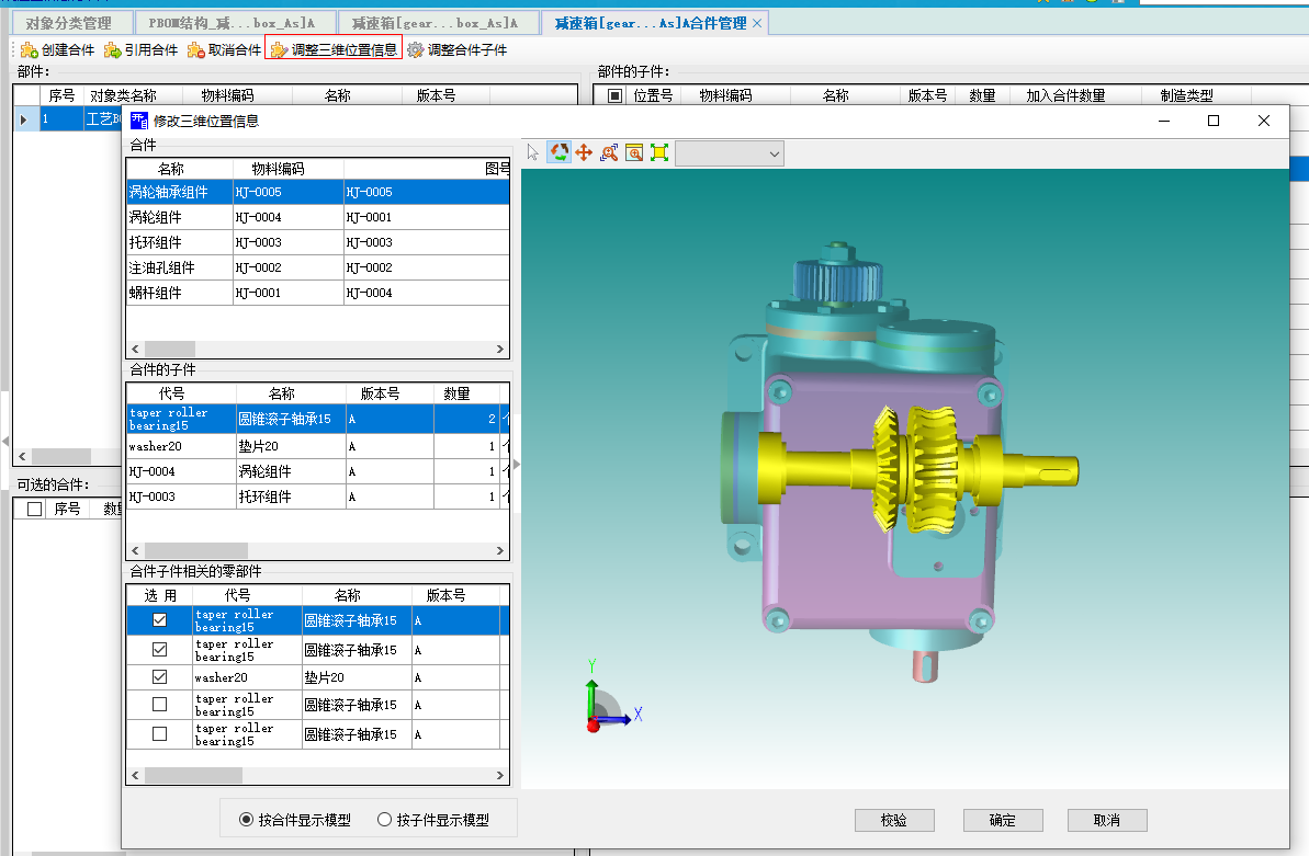 合件的維護是PBOM調整的重要工作之一,開目eCOL PLM通過引用合件的三維模型以及合件的變更,可保障PBOM中結構的完整性和一致性。新版本PLM能夠輔助企業(yè)規(guī)范合件庫的管理,實現(xiàn)合件庫的有效應用,并且提供批量的合件操作功能,如部件批量自動檢索、合件引用、合件變更等,大幅提供工作效率。同時也支持部件下合件的三維模型設計,基于此模型來調整合件中具體的零件實例,以此支持基于具體位置的零件的合件生成,以及滿足左右件等合件生成的要求。
