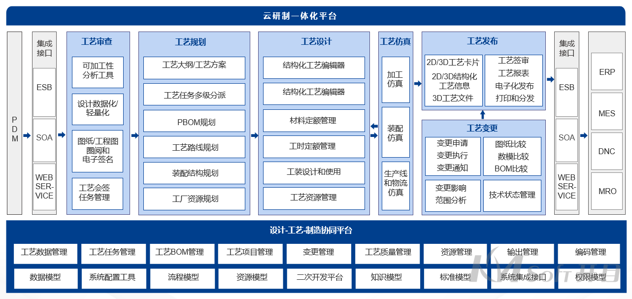 與PLM/MES/ERP以及設(shè)計和仿真工具的集成管理,承接上游設(shè)計數(shù)據(jù),強(qiáng)化工藝橋梁作用,為下游生產(chǎn)提供業(yè)務(wù)所需的各類工藝要素,保證工藝數(shù)據(jù)的一致性、及時性及完整性;