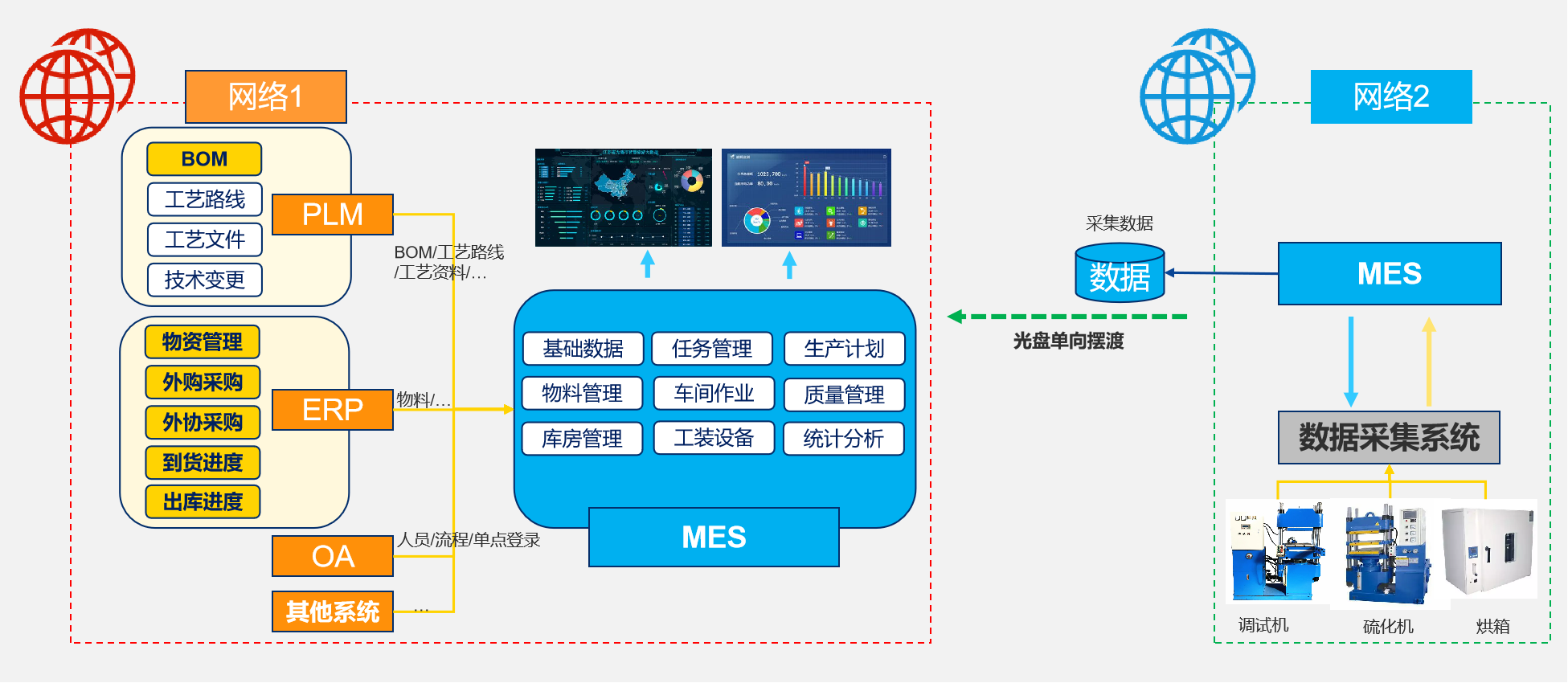 開目方案采用 “光盤單向擺渡” 技術(shù),在滿足安全隔離規(guī)范的同時,實現(xiàn)生產(chǎn)工單、工藝文件、質(zhì)量記錄等核心業(yè)務(wù)數(shù)據(jù)安全流轉(zhuǎn),為跨網(wǎng)絡(luò)協(xié)同搭建可靠數(shù)據(jù)通道。