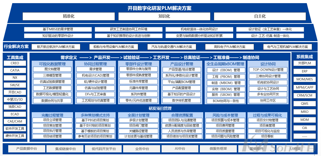 經(jīng)過對(duì)業(yè)務(wù)部門的深入調(diào)研,以及多輪技術(shù)交流,開目團(tuán)隊(duì)最終為企業(yè)精心繪制了藍(lán)圖方案。項(xiàng)目將重點(diǎn)為企業(yè)搭建集團(tuán)級(jí)的產(chǎn)品數(shù)據(jù)管理、流程管理、變更管理、項(xiàng)目管理、BOM管理、跨組織的設(shè)計(jì)協(xié)同管理、結(jié)構(gòu)化工藝管理、系統(tǒng)集成等統(tǒng)一的產(chǎn)品全生命周期管理平臺(tái),實(shí)現(xiàn)對(duì)企業(yè)的產(chǎn)品數(shù)據(jù)從需求評(píng)估、立項(xiàng)、產(chǎn)品設(shè)計(jì)、樣品、試產(chǎn)到量產(chǎn)的全業(yè)務(wù)過程管理,力爭(zhēng)將沃德汽車部件打造汽車零部件制造行業(yè)的數(shù)字化轉(zhuǎn)型新標(biāo)桿。